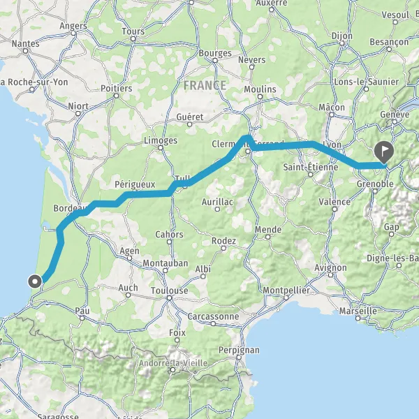 Prendre à droite et rejoindre A63 E5 E70. Continuer sur 116 kilomètres
