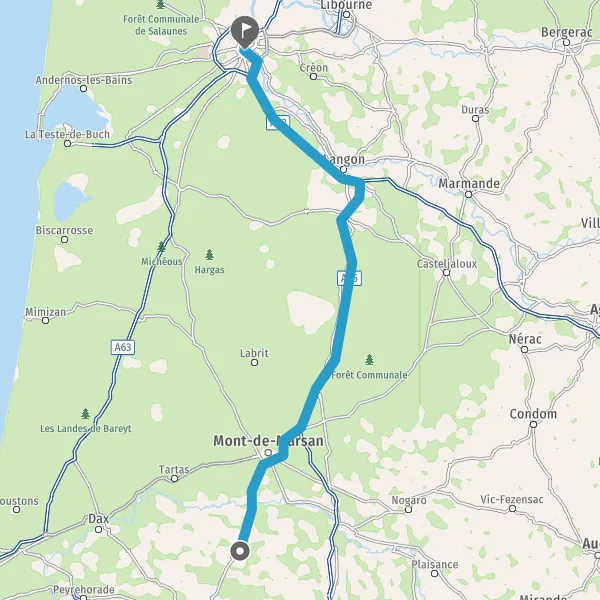 Prendre à droite et rejoindre A65 E7. Continuer sur 71 kilomètres