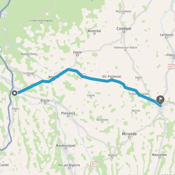 Tourner légèrement à droite sur N124 (Route d'Auch) et continuer sur 4,5 kilomètres