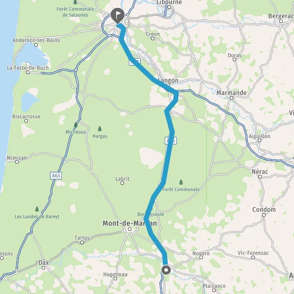 Avec le mode voiture, vous pouvez configurer vos options (type de véhicule, autoroute ou non, péage ou non, distance la plus courte), tout en ayant accès aux infos de circulation grâce à notre service d'info-trafic en temps réel. Ainsi faites des économies sur le coût ou la durée de votre voyage, en trouvant le trajet Aire-sur-l'Adour Bordeaux adapté à vos besoins.