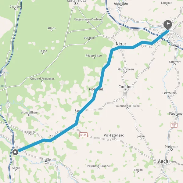Tourner à gauche sur D656 (Route de Nérac) et continuer sur 11 kilomètres