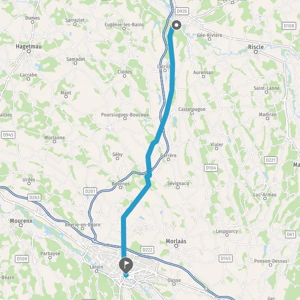 Au rond-point, prendre la 2ème sortie sur D834 D456 (Route de Pau) et continuer sur 2,9 kilomètres