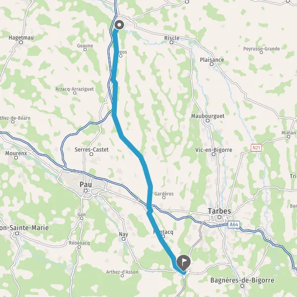 Au rond-point, prendre la 2ème sortie sur D834 (Route de Pau) et continuer sur 11 kilomètres