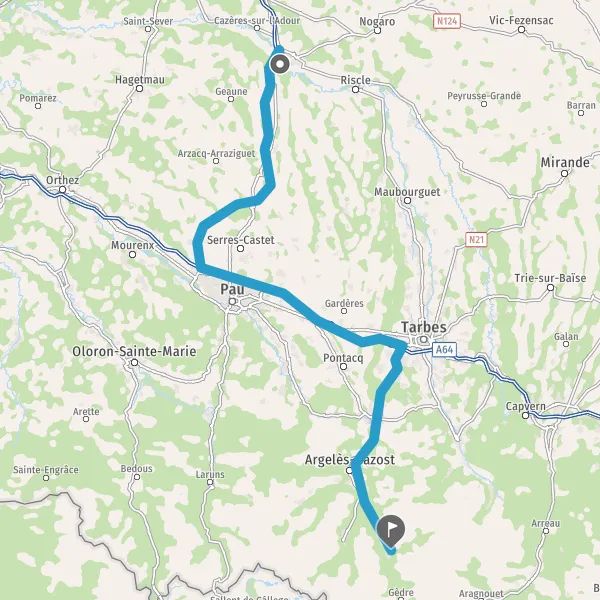 Prendre à droite et rejoindre A64 E80. Continuer sur 43 kilomètres