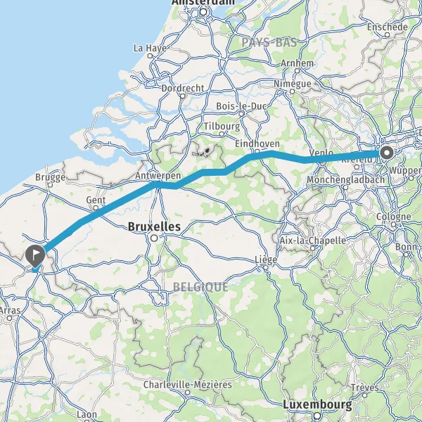 Tourner légèrement à droite sur A67 A2 E34 E25 et continuer sur 3,2 kilomètres