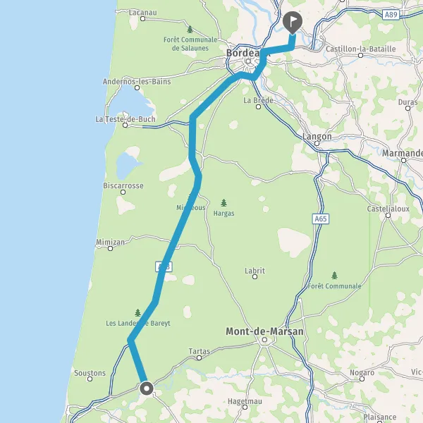 Au rond-point, prendre la 2ème sortie sur D947 (Route de Castets) et continuer sur 13 kilomètres