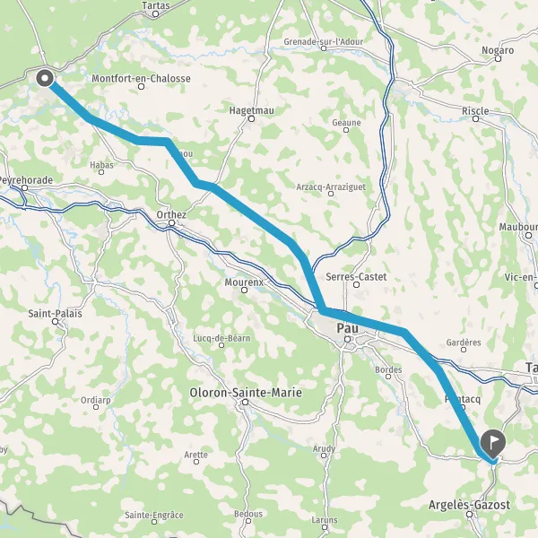 Prendre à droite et rejoindre A64. Continuer sur 20 kilomètres