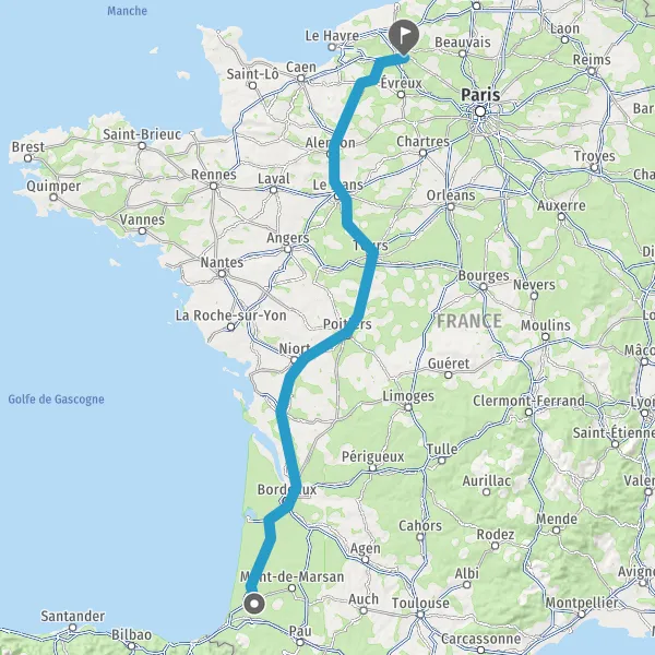 Continuer E5 (L'Aquitaine) sur 328 kilomètres
