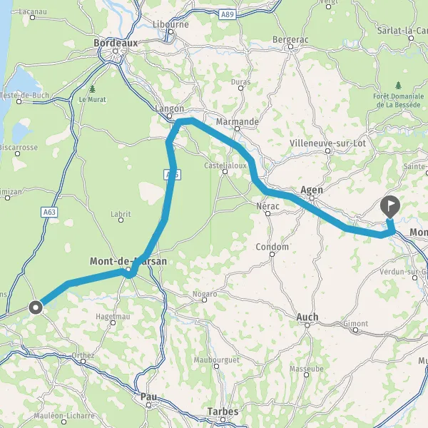 Prendre à droite et rejoindre A65 E7. Continuer sur 71 kilomètres