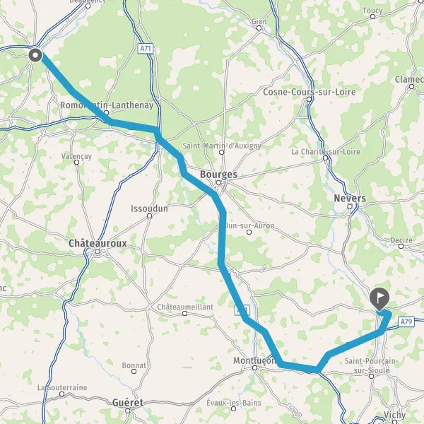 Prendre à droite et rejoindre A71. Continuer sur 5,5 kilomètres
