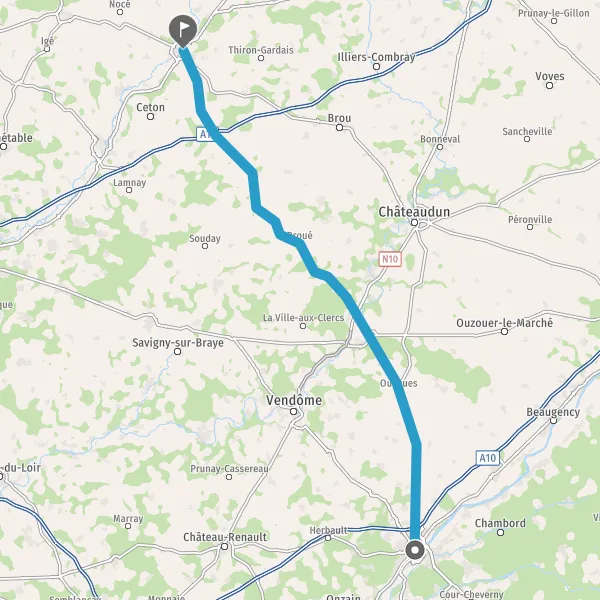 Tourner à droite sur D924 (Route de Châteaudun) et continuer sur 23 kilomètres