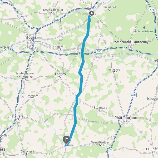 Tourner légèrement à droite sur D764 (Rue de Montrichard) et continuer sur 11 kilomètres