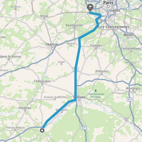 Prendre à droite et rejoindre A10. Continuer sur 50 kilomètres