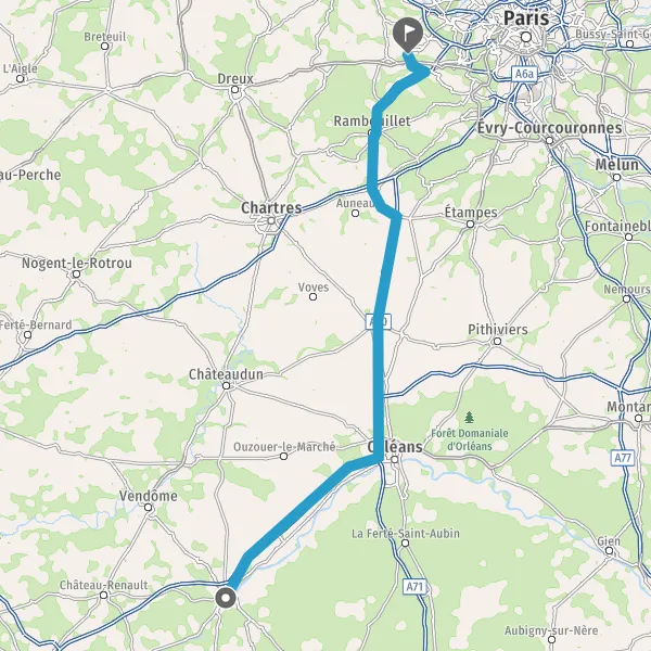 Prendre à droite et rejoindre A10. Continuer sur 50 kilomètres