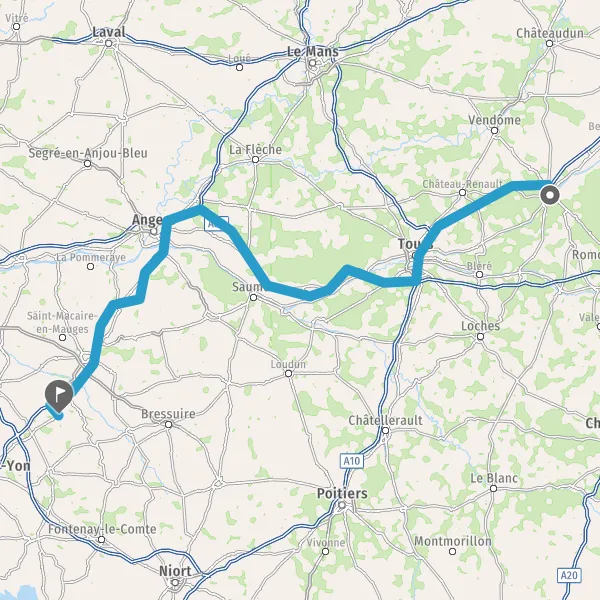 Continuer et rejoindre A85 E60. Continuer sur 98 kilomètres