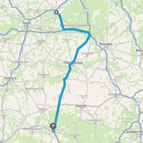 Prendre à droite et rejoindre A71. Continuer sur 5,5 kilomètres