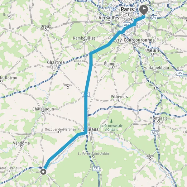 Prendre à droite et rejoindre A10. Continuer sur 50 kilomètres