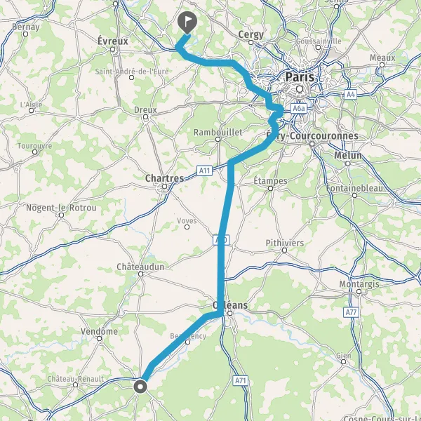 Prendre à droite et rejoindre A10. Continuer sur 50 kilomètres