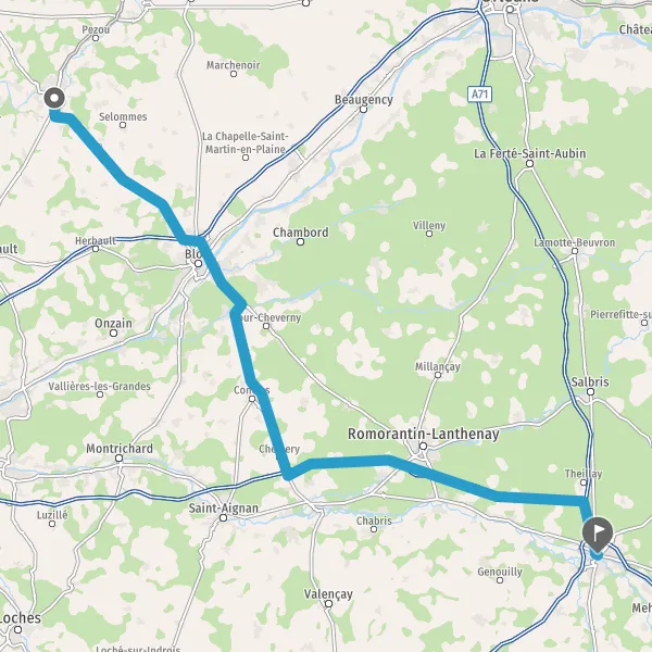 Prendre à droite et rejoindre Route de Blois. Continuer sur 900 mètres