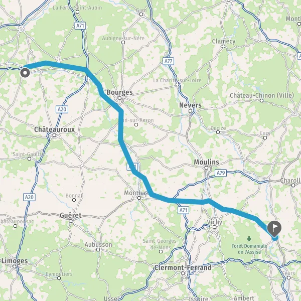 Prendre à droite et rejoindre A71. Continuer sur 5,5 kilomètres
