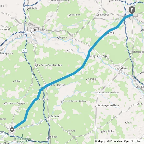 Au rond-point, prendre la 2ème sortie sur D961 (Route de Lorris) et continuer sur 2,4 kilomètres