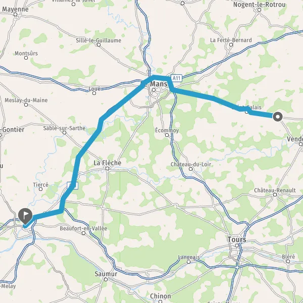 Prendre à gauche et rejoindre A11. Continuer sur 12 kilomètres