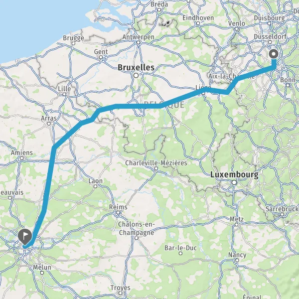 Continuer A1 A1 E19 E15 sur 129 kilomètres
