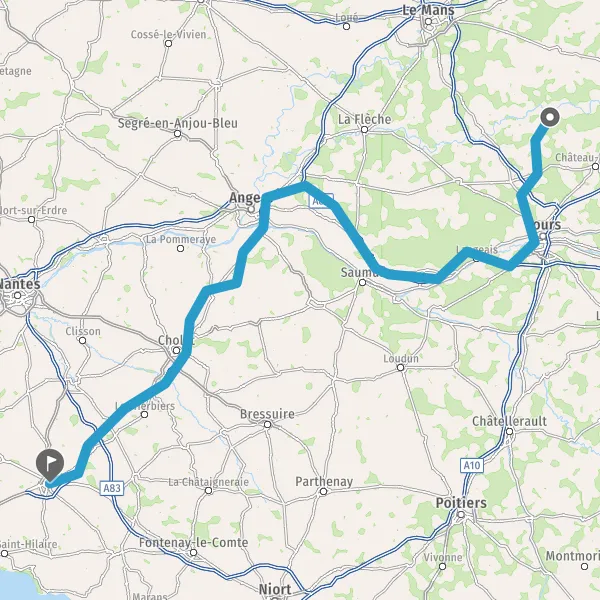 Continuer et rejoindre A87. Continuer sur 126 kilomètres