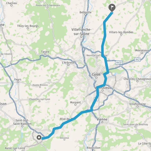 Prendre à droite et rejoindre A42. Continuer sur 13 kilomètres