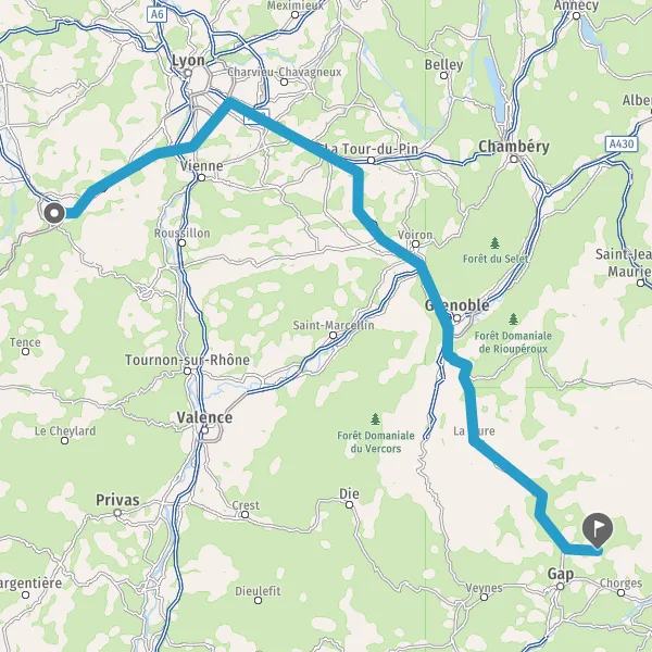 Prendre à droite et rejoindre N85 D1085 (Route de Laffrey). Continuer sur 6 kilomètres