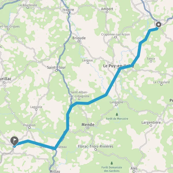 Tourner à droite sur D5 (Route de Saint-Chély) et continuer sur 16 kilomètres