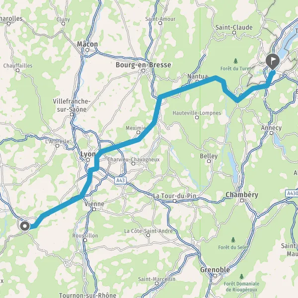 Prendre à droite et rejoindre A42. Continuer sur 4,3 kilomètres