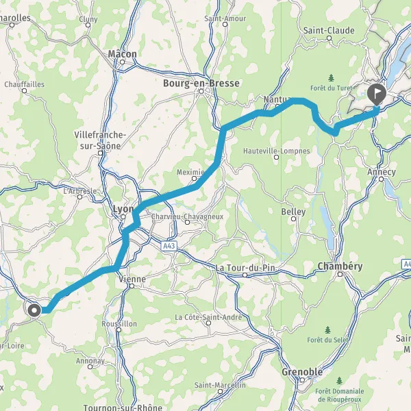 Prendre à droite et rejoindre A42. Continuer sur 4,3 kilomètres