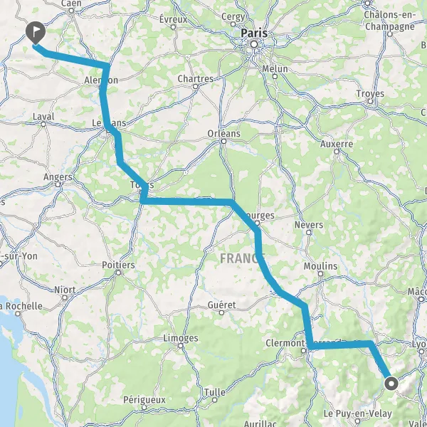Prendre à droite et rejoindre A85 E604. Continuer sur 105 kilomètres