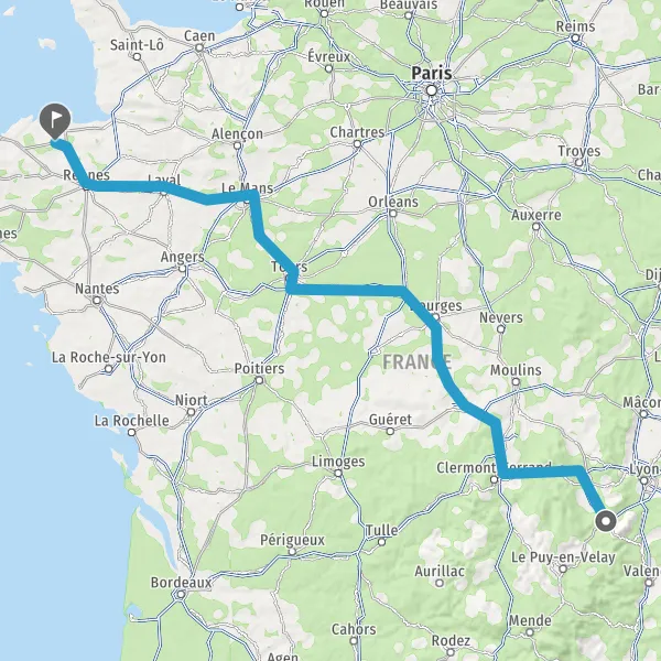 Prendre à droite et rejoindre A85 E604. Continuer sur 105 kilomètres