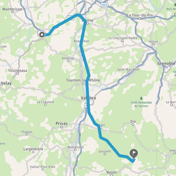Au rond-point, prendre la 2ème sortie sur D93 (Route de Valence) et continuer sur 1,3 kilomètre