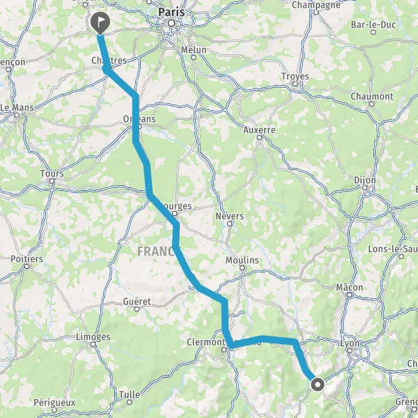 Prendre à droite et rejoindre A89 A71 E11 E70. Continuer sur 285 kilomètres