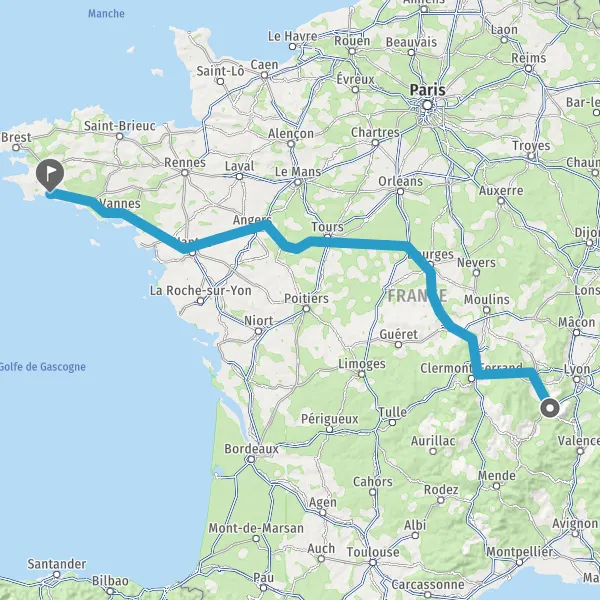 Prendre à droite et rejoindre A85 E604. Continuer sur 205 kilomètres