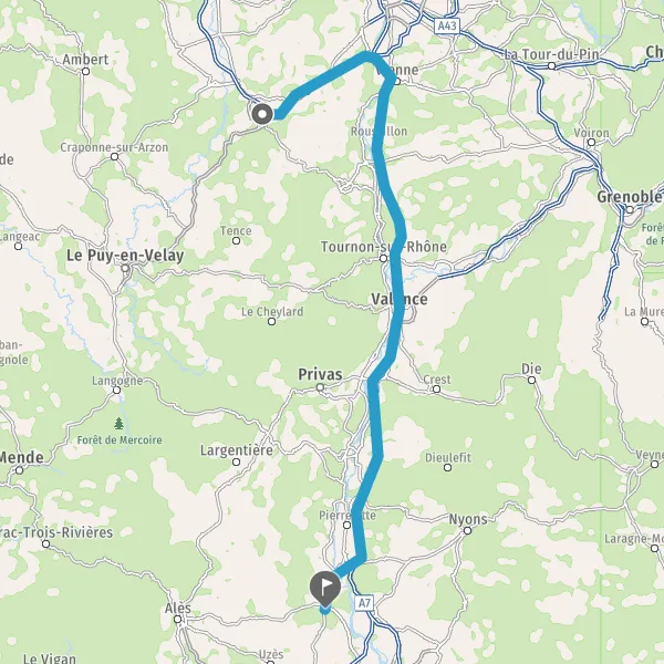 Prendre à droite et rejoindre A7. Continuer sur 154 kilomètres
