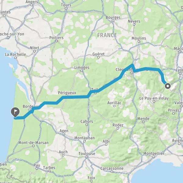 Prendre à droite et rejoindre A63. Continuer sur 25 kilomètres