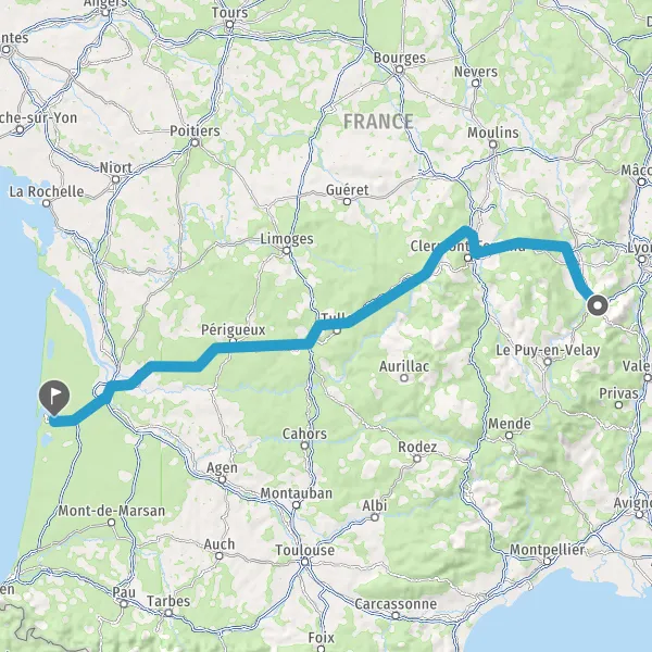 Prendre à droite et rejoindre A63. Continuer sur 25 kilomètres