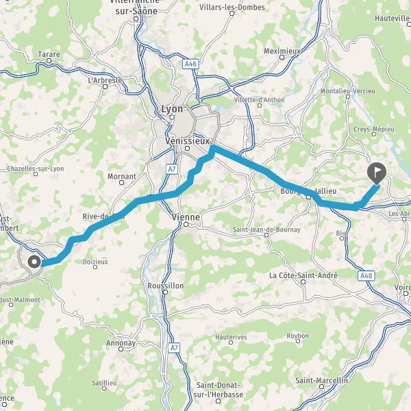 Continuer et rejoindre A46 E15 E70. Continuer sur 21 kilomètres