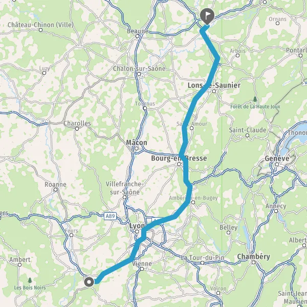 Prendre à droite et rejoindre A42. Continuer sur 4,3 kilomètres