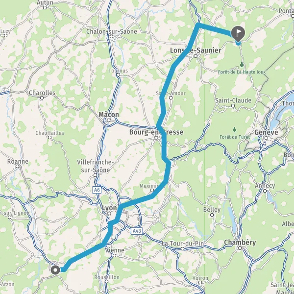 Prendre à droite et rejoindre A42. Continuer sur 4,3 kilomètres