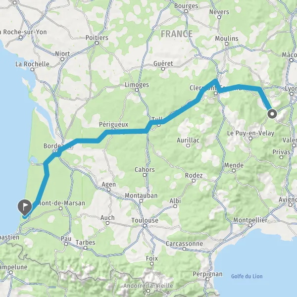 Prendre à droite et rejoindre A63. Continuer sur 130 kilomètres