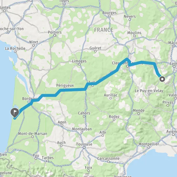 Prendre à droite et rejoindre A63. Continuer sur 25 kilomètres