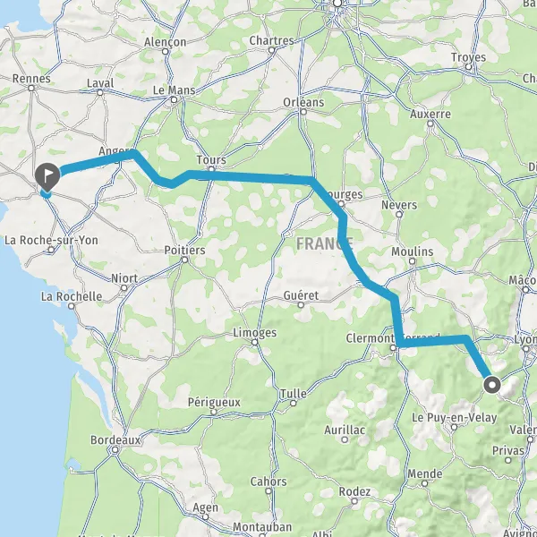 Prendre à droite et rejoindre A85 E604. Continuer sur 205 kilomètres