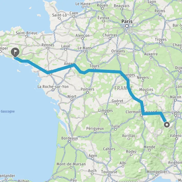 Prendre à droite et rejoindre A85 E604. Continuer sur 205 kilomètres