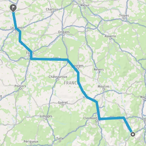 Prendre à droite et rejoindre A89 A71 E11 E70. Continuer sur 212 kilomètres