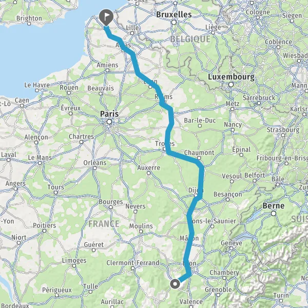 Prendre à droite et rejoindre A26. Continuer sur 222 kilomètres